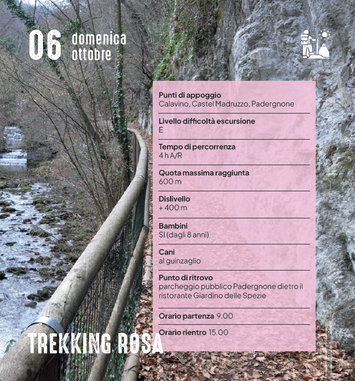 Dal paese di Padergnone si lascia la zona più turistica per addentrarsi in uno degli ambienti naturali più particolari, la roggia di Calavino, su un comodo sentiero che risale la valle fra piccole cascate, alcune pietrificate. Raggiunto il paese di Calavino, dove è possibile ammirare i numerosi utilizzi nel passato dell’acqua, si prosegue poi per il Castello di Madruzzo e rientrando si raggiungono i ruderi di S. Martino, piccolissima chiesetta edificata nel XIII secolo e poi a più riprese distrutta e ricostruita. Il percorso si conclude a Padergnone con la visita a Casa Caveau Vino Santo.